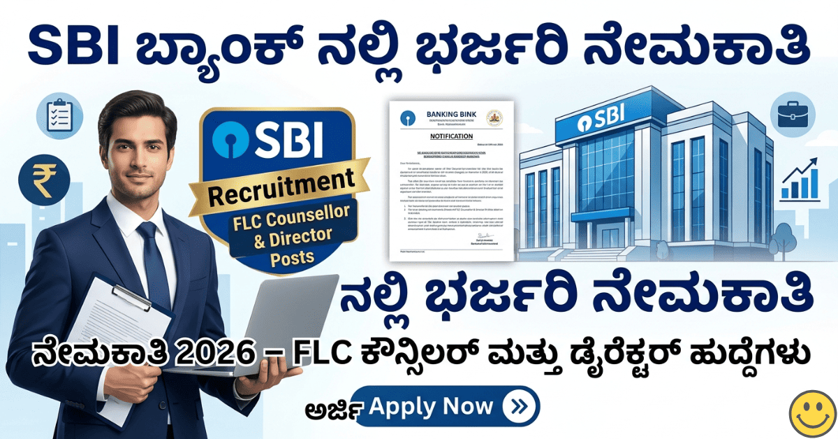SBI ಬ್ಯಾಂಕ್ ನಲ್ಲಿ ಭರ್ಜರಿ ನೇಮಕಾತಿ – SBI Recruitment 2026 FLC ಕೌನ್ಸಿಲರ್ ಮತ್ತು ಡೈರೆಕ್ಟರ್ ಹುದ್ದೆಗಳಿಗೆ ಅರ್ಜಿ ಆಹ್ವಾನ.