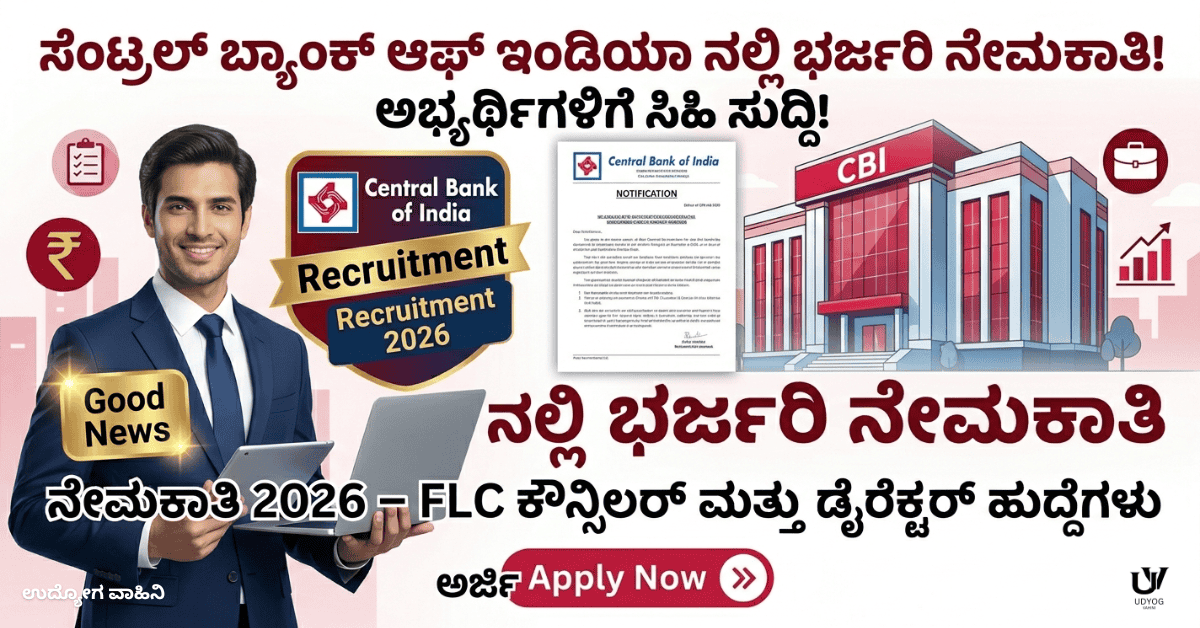 SBI Recruitment 2026 FLC ಕೌನ್ಸಿಲರ್ ಮತ್ತು ಡೈರೆಕ್ಟರ್ ಹುದ್ದೆಗಳಿಗೆ ಅರ್ಜಿ ಆಹ್ವಾನ.State Bank Of India (SBI) 2026 ನೇ ಸಾಲಿನಹೊಸ ವರ್ಷದ ಮೊದಲ ನೇಮಕಾತಿಯನ್ನು ಅಧಿಕೃತವಾಗಿ FLC ಕೌನ್ಸಿಲರ್ ಮತ್ತು ಡೈರೆಕ್ಟರ್ ಹುದ್ದೆಗಳಿಗೆ ಅರ್ಜಿ ಆಹ್ವಾನಿಸಿದೆ. ಈ ನೇಮಕಾತಿಯಲ್ಲಿ ಒಟ್ಟು 257 ಹುದ್ದೆಗಳು ಇದ್ದು , ಸರ್ಕಾರಿ ವಲಯದ ಬ್ಯಾಂಕಿಂಗ ಕ್ಷೇತ್ರದಲ್ಲಿ ಕೆಲಸ ಮಾಡಲು ಬಯಸುವ ಅಭ್ಯರ್ಥಿಗಳಿಗೆ ಒಂದು ಉತ್ತಮ ಅವಕಾಶವಾಗಿದೆ. ಇದು ಪ್ರಮುಖವಾಗಿ ಸರ್ಕಾರಿ ಕೆಲಸದಲ್ಲಿ ನಿವೃತ್ತರಾದ ಹಿರಯ ನಾಗರಿಕರಿಗೆ ಇರುವ ಒಂದು … Read more