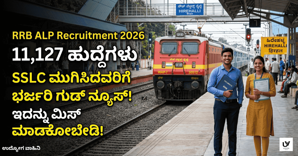 ಭಾರತೀಯ ರೈಲ್ವೆಯಲ್ಲಿ ಸರ್ಕಾರಿ ಉದ್ಯೋಗವನ್ನು ಹುಡುಕುತ್ತಿರುವ ಅಭ್ಯರ್ಥಿಗಳಿಗೆ RRB ALP Recruitment 2026 (CEN 01/2026) ಒಂದು ಸುವರ್ಣಾವಕಾಶವಾಗಿದೆ. 11,127 ಹುದ್ದೆಗಳ ಈ ನೇಮಕಾತಿಯು ಸ್ಥಿರ ಮತ್ತು ಉತ್ತಮ ಸಂಬಳದ ಕೆಲಸವನ್ನು ಪಡೆಯಲು ಒಂದು ಅವಕಾಶವನ್ನು ನೀಡುತ್ತದೆ.